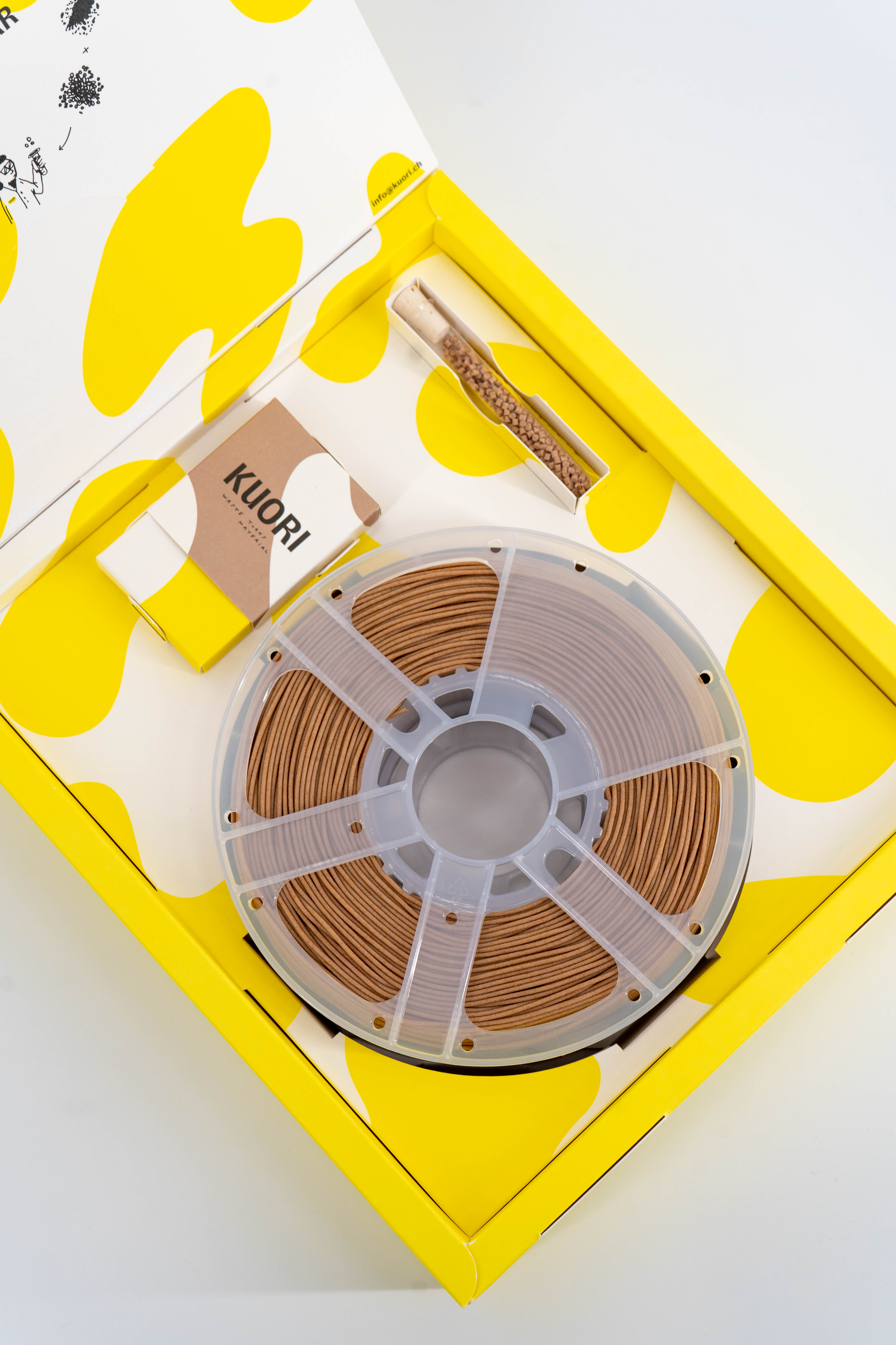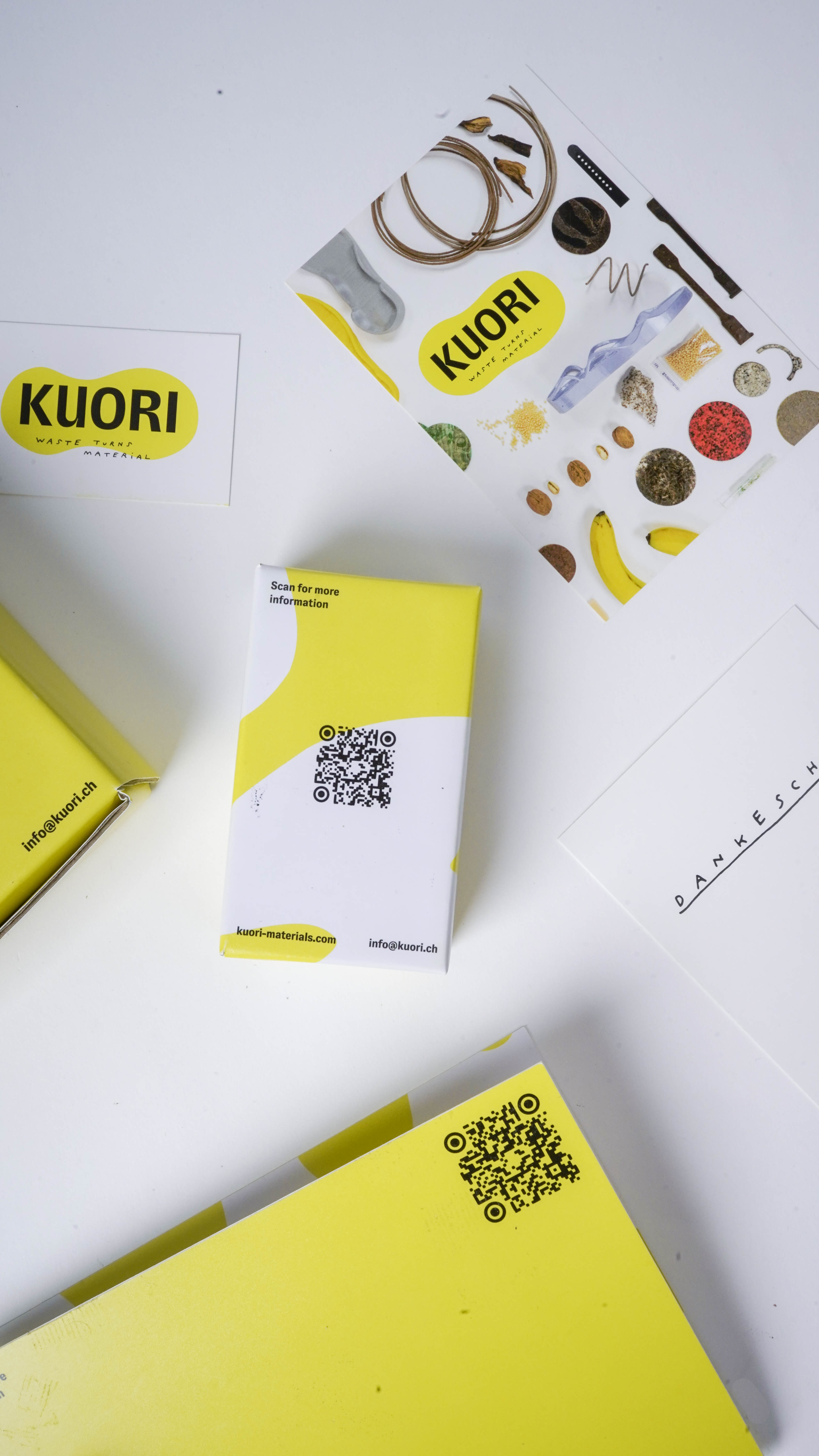 Nebst der Produktentwicklung entstanden diverse Verpackungsprojekte für das Start-up KUORI. Im Fokus stand dabei stets eine spielerische Vermittlung von Informationen, starke grafische Elemente sowie eine überzeugende Formsprache, um die Stärke der Materialien und Produkte hervorzuheben.