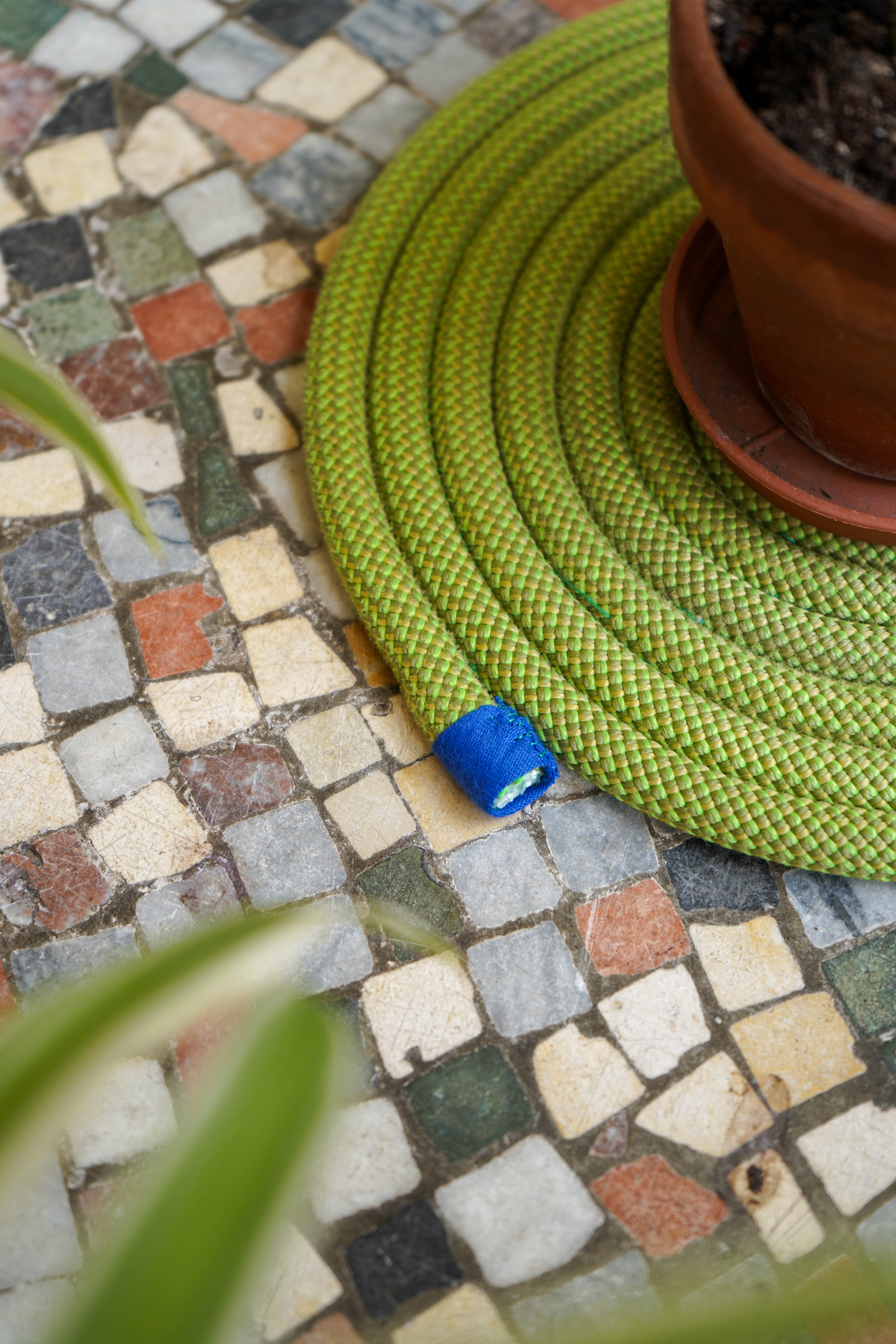 Die Seilenden verschiedener Reuseprojekte aus alten Kletterseilen der MINING MAP werden zu bunten Untersetzern für Pflanzen, Teekannen oder Pfannen. Praktisch kein Stück wird weggeworfen, jedes Seilende erhält eine neue Funktion und wird zum vielseitigen Untersetzerallrounder.
